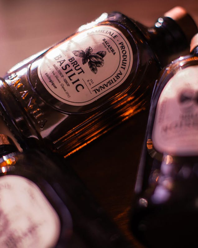 Le format de bouteille institué par la marque, donne déjà le ton sur l’envie d’avoir un produit tenant dans la main. Un produit se rapprochant des codes du parfum, de la fiole. L’univers se doit d’être marquant dans un microcosme où les marques de sirops communiquent globalement de la même manière.