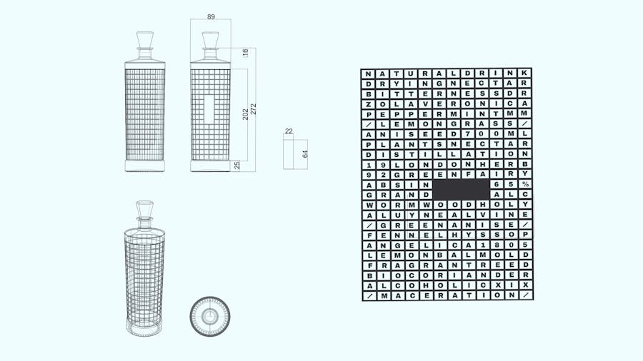 Le flacon en verre cylindrique élégant arbore un codex s’inspirant de la complexité cérébrale.