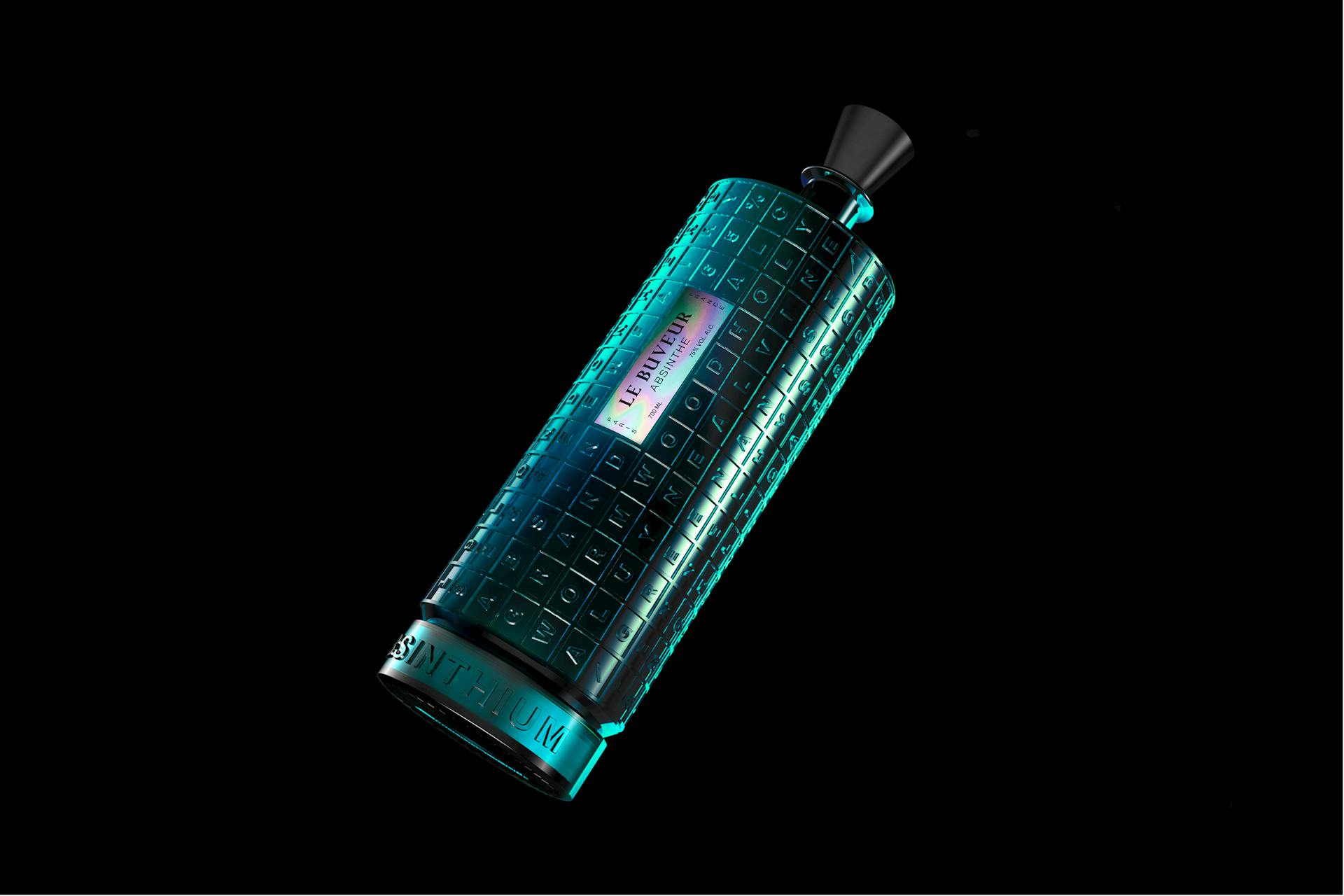 La semi-transparence de la bouteille semble capturer la lumière d’une manière unique, créant des reflets chatoyants dansant sur ses parois, comme lorsque l’on observe un tableau animé par des nuances éclatantes.