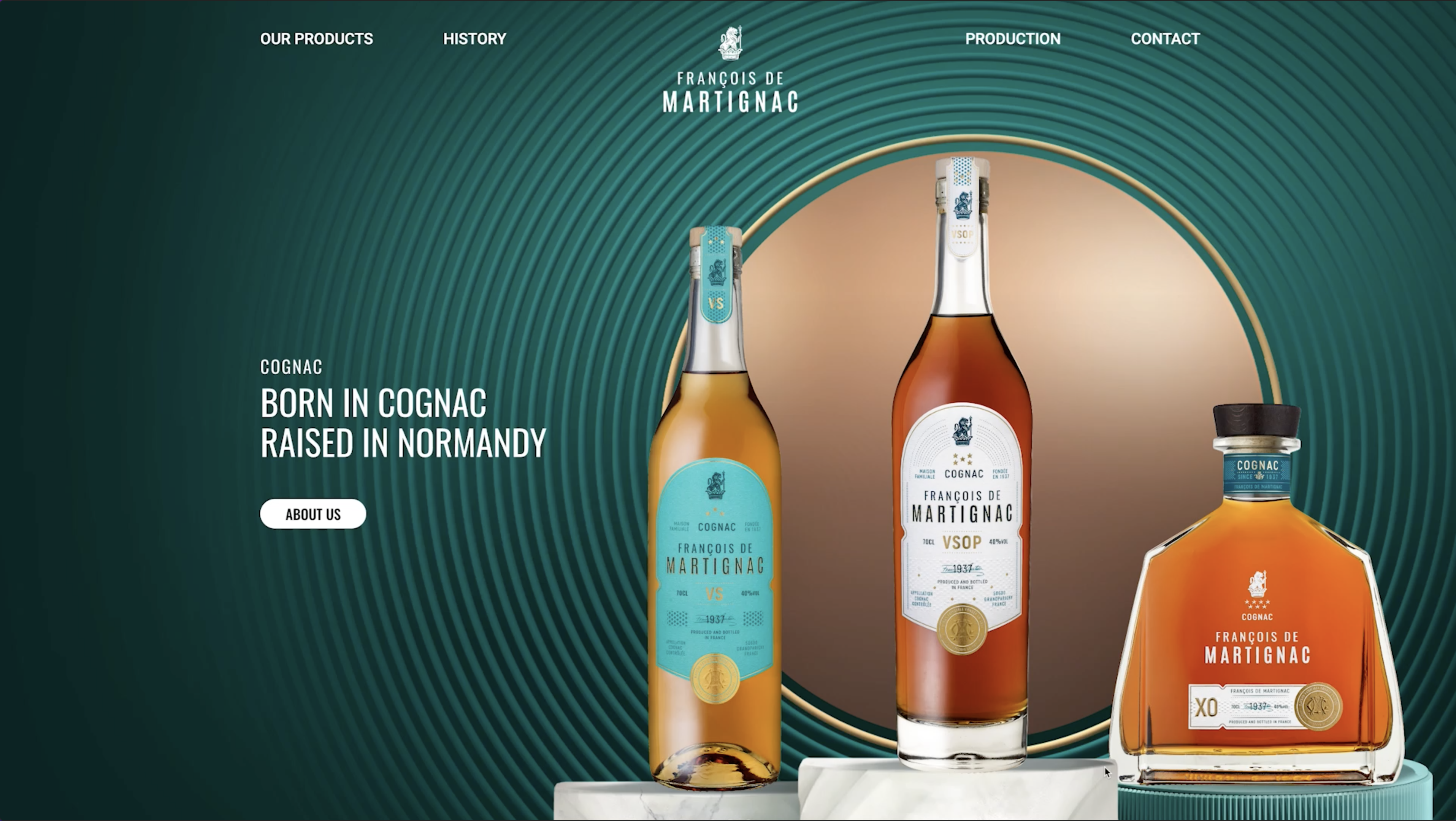 Cette référence en cognac propose une conception inédite. Elle symbolise une parfaite abstraction de deux périodes. Entre la confection classique d'un noble spiritueux VS/VSOP/XO et la subtile modernité de style, ces trois produits destinés à l'export nous laissent découvrir un résultat riche en détails.