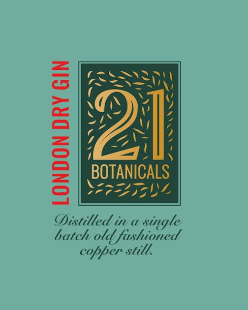 Tout comme les arômes du gin Tony Dog, la composition graphique est équilibrée et structurée. La partie supérieure de l'étiquette dépeint une scène de chasse, tandis que la partie inférieure contient les informations techniques du spiritueux. Les couleurs riches et saturées de l'étiquette confèrent à l'ensemble un aspect moderne et contemporain.